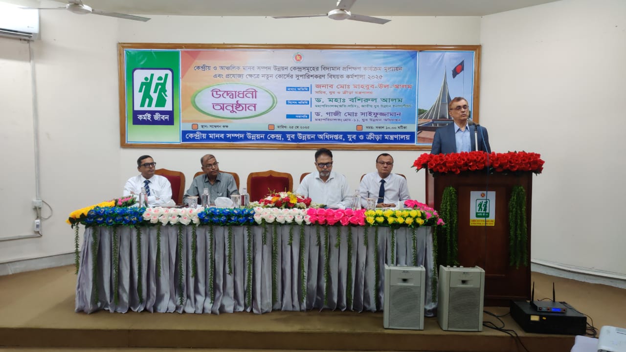 কর্মশালা-২০২৫ : কেন্দ্রীয় ও আঞ্চলিক মানব সম্পদ উন্নয়ন কেন্দ্রসমূহের বিদ্যমান প্রশিক্ষণ কার্যক্রম মূল্যায়ন এবং প্রযোজ্য ক্ষেত্রে নতুন কোর্সর সুপারিশকরণ বিষয়ক কর্মশালা